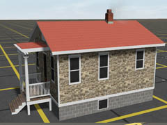 DG reskin House Sears Bungalow red tin roof stone walls 3, windows 2, door 3 |