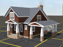 Craftsman bungalow home. Height adjustable. Ported with appropriate Trainz modifications by me from the Craftsman Bungalow with (another) Station Wagon model on the Google 3D Warehouse. I have also added a chimney smoke effect to the mesh. 10K Polys.