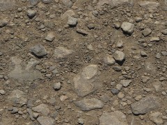 PBR environment texture. Rocky light-brown soil assorted pebbles and rocks.