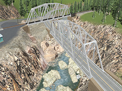 Reskin by Jack Straessle (jjslll54) and uploaded with permission from austin316hockey his RRTK 2trk Through-truss Warren, 200ft (5m), with tracks removed for adding a road. This is to simulate the Tobin Road Bridge in the Feather River Canyon which matches the rail brige in appearance. Road of choice will need to be added. The abutmaents are made using nexusdj Concrete base 2x10x6 spline on the dls and not included with the bridge. You can use RRTK double track abutment (5m) if desired but will need to bury invisible track in the road for it to attach to. Or, you can run your choice of bridge track manually through the bridge for use as a rail bridge as originally intended. To be clear this assett is bridge only, no track, road or abuttment. It is a spline.