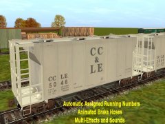 Accommodate CMTMSystem3 car destination system. Chicken Neck Foundry presents an animated 8 top hatch 2-Bay Covered Hopper with automatic assigned running numbers (thanks eldavo) and animated air brake hoses (thanks Wulf_9). The 8 top hatches open and close with load and unload sounds and dust flying at facilities like woodchips and interactive industries. Dust bellows from under the bays as the hopper unloads. Thanks bsnteng for fantastic assistance in editing hopper.gs script for automatic running numbers, brake air hoses, and couplers, and also thanks to Pencil42 aka Chris for fantastic assistance in editing previous hopper.gs script for the dust clouds at loading docks. . Thanks to Fitz505 for his prior assistance on hatch animation. Car has brake cylinders and couplers (thanks prjindigo) too. See more action and dust clouds loading at Auran industries. Created from the rails up with gmax Trainz Asset Creation Studio. Loads LARS and Auran products: barley, cement, corn, flour, grain hp, lose gravel, hops, limestone aggregate, malt, oats, peas, plaster, granular plastic, quartz sand, rice, sand, sand and gravel, soda ash, soya beans, sugar, taconite pellets, wheat, or woodchips. Employees realsquash bogies.