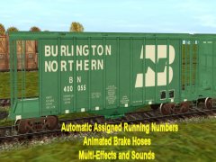 Chicken Neck Foundry presents a 2-bay airslide hopper. Looking more like a boxcar than a hopper, airslides where first introduced in 1954 by General American Transporation Corporation like this one. They feature a finely perforated interior fabric lining. The powdered or granulated load of usually flour or sugar is effectively liquified as it is forced out of the car under high air pressure via hose connections. It is also used to carry grains and other fine products. This early C111 39 ft model hopper's top hatches open and close with load and unload sounds and additional dust clouds at facilities like woodchips and with automatic assigned running numbers (thanks eldavo) and animated air brake hoses (thanks Wulf_9).. While usually dust free, this car also bellows clouds of it from under the bays as the hopper unloads. Thanks to Pencil42, Fitz505 and PhilC (his handles and couplers), whose assistance on prior type hoppers and cars made this one possible. Car has brake cylinder and reservoir, and couplers too. Created from the rails up with gmax Trainz Asset Creation Studio. Loads LARS and Auran products: barley, cement, corn, flour, grain hp, lose gravel, hops, limestone aggregate, malt, oats, peas,plaster, granular plastic, quartz sand, rice, sand, sand and gravel, soda ash, soya beans, sugar, taconite pellets, wheat, or woodchips. Note: Some are not appropriate for this type car. Employees roller bearing trucks by CloakedGhost275.