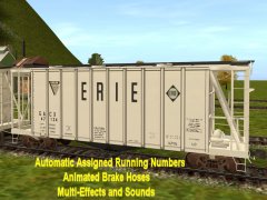 Chicken Neck Foundry presents a 2-bay airslide hopper. Looking more like a boxcar than a hopper, airslides where first introduced in 1954 by General American Transporation Corporation like this one. They feature a finely perforated interior fabric lining. The powdered or granulated load of usually flour or sugar is effectively liquified as it is forced out of the car under high air pressure via hose connections. It is also used to carry grains and other fine products. This early C111 39 ft model hopper's top hatches open and close with load and unload sounds and additional dust clouds at facilities like woodchips and with automatic assigned running numbers (thanks eldavo) and animated air brake hoses (thanks Wulf_9).. While usually dust free, this car also bellows clouds of it from under the bays as the hopper unloads. Thanks to Pencil42, Fitz505 and PhilC (his handles and couplers), whose assistance on prior type hoppers and cars made this one possible. Car has brake cylinder and reservoir, and couplers too. Created from the rails up with gmax Trainz Asset Creation Studio. Loads LARS and Auran products: barley, cement, corn, flour, grain hp, lose gravel, hops, limestone aggregate, malt, oats, peas,plaster, granular plastic, quartz sand, rice, sand, sand and gravel, soda ash, soya beans, sugar, taconite pellets, wheat, or woodchips. Note: Some are not appropriate for this type car. Employees roller bearing trucks by CloakedGhost275.