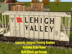 Chicken Neck Foundry presents a 2-bay airslide hopper. Looking more like a boxcar than a hopper, airslides where first introduced in 1954 by General American Transporation Corporation like this one. They feature a finely perforated interior fabric lining. The powdered or granulated load of usually flour or sugar is effectively liquified as it is forced out of the car under high air pressure via hose connections. It is also used to carry grains and other fine products. This early C111 39 ft model hopper's top hatches open and close with load and unload sounds and additional dust clouds at facilities like woodchips and with automatic assigned running numbers (thanks eldavo) and animated air brake hoses (thanks Wulf_9).. While usually dust free, this car also bellows clouds of it from under the bays as the hopper unloads. Thanks to Pencil42, Fitz505 and PhilC (his handles and couplers), whose assistance on prior type hoppers and cars made this one possible. Car has brake cylinder and reservoir, and couplers too. Created from the rails up with gmax Trainz Asset Creation Studio. Loads LARS and Auran products: barley, cement, corn, flour, grain hp, lose gravel, hops, limestone aggregate, malt, oats, peas,plaster, granular plastic, quartz sand, rice, sand, sand and gravel, soda ash, soya beans, sugar, taconite pellets, wheat, or woodchips. Note: Some are not appropriate for this type car. Employees roller bearing trucks by CloakedGhost275.