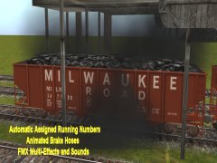 H62R Bottom dump hopper (XHB) with Automatic Assigned Running Numbers, animated brake hoses, and MFX multi-effect with smoke and sounds, and also ccommodates CMTMSystem3 car destination system. Many thanks to emcnally for assistance and permissions granted. Special thanks to bsnteng for FMX library v1.09. Thanks also to Eldavo and Wulf_9 for their significate contributions, and other dependencies by llj, cloakedghost275, genesteal, jsibm, jimm, slugmasher, zatovisualworks, whitepass and winnaa. Reskinned by majekear.