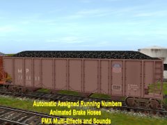 H62R Bottom dump hopper (XHB) with Automatic Assigned Running Numbers, animated brake hoses, and MFX multi-effect with smoke and sounds, and also ccommodates CMTMSystem3 car destination system. Many thanks to emcnally for assistance and permissions granted. Special thanks to bsnteng for FMX library v1.09. Thanks also to Eldavo and Wulf_9 for their significate contributions, and other dependencies by llj, cloakedghost275, genesteal, jsibm, jimm, slugmasher, zatovisualworks, whitepass and winnaa. Reskinned by majekear.