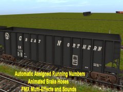 H62R Bottom dump hopper (XHB) with Automatic Assigned Running Numbers, animated brake hoses, and MFX multi-effect with smoke and sounds, and also ccommodates CMTMSystem3 car destination system. Many thanks to emcnally for assistance and permissions granted. Special thanks to bsnteng for FMX library v1.09. Thanks also to Eldavo and Wulf_9 for their significate contributions, and other dependencies by llj, cloakedghost275, genesteal, jsibm, jimm, slugmasher, zatovisualworks, whitepass and winnaa. Reskinned by majekear.