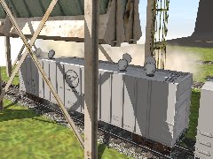 Chicken Neck Foundry presents a 2-bay airslide hopper. Looking more like a boxcar than a hopper, airslides where first introduced in 1954 by General American Transporation Corporation. They feature a finely perforated interior fabric lining. The powdered or granulated load of usually flour or sugar is effectively liquified as it is forced out of the car under high air pressure via hose connections. It is also used to carry grains and other fine products. This later 48 ft model hopper's top hatches open and close with load and unload sounds and additional dust clouds at facilities like woodchips and with automatic assigned running numbers (thanks eldavo) and animated air brake hoses (thanks Wulf_9).. While usually dust free, this car also bellows clouds of it from under the bays as the hopper unloads. Thanks to Pencil42, Fitz505 and PhilC (his handles and couplers), whose assistance on prior type hoppers and cars made this one possible. Car has brake cylinder and reservoir, and couplers too. Created from the rails up with gmax Trainz Asset Creation Studio. Loads LARS and Auran products: barley, cement, corn, flour, grain hp, lose gravel, hops, limestone aggregate, malt, oats, peas, plaster, granular plastic, quartz sand, rice, sand, sand and gravel, soda ash, soya beans, sugar, taconite pellets, wheat, or woodchips. Note: Some are not appropriate for this type car. Employees roller bearing trucks by CloakedGhost275.