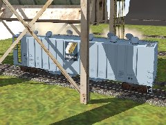 Chicken Neck Foundry presents a 2-bay airslide hopper. Looking more like a boxcar than a hopper, airslides where first introduced in 1954 by General American Transporation Corporation. They feature a finely perforated interior fabric lining. The powdered or granulated load of usually flour or sugar is effectively liquified as it is forced out of the car under high air pressure via hose connections. It is also used to carry grains and other fine products. This later 48 ft model hopper's top hatches open and close with load and unload sounds and additional dust clouds at facilities like woodchips and with automatic assigned running numbers (thanks eldavo) and animated air brake hoses (thanks Wulf_9).. While usually dust free, this car also bellows clouds of it from under the bays as the hopper unloads. Thanks to Pencil42, Fitz505 and PhilC (his handles and couplers), whose assistance on prior type hoppers and cars made this one possible. Car has brake cylinder and reservoir, and couplers too. Created from the rails up with gmax Trainz Asset Creation Studio. Loads LARS and Auran products: barley, cement, corn, flour, grain hp, lose gravel, hops, limestone aggregate, malt, oats, peas, plaster, granular plastic, quartz sand, rice, sand, sand and gravel, soda ash, soya beans, sugar, taconite pellets, wheat, or woodchips. Note: Some are not appropriate for this type car. Employees roller bearing trucks by CloakedGhost275.