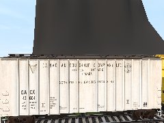 Chicken Neck Foundry presents a -whtat if- Evans Railcar Leasing Company; GE Capital Railcar Services 2-bay airslide hopper. Looking more like a boxcar than a hopper, airslides where first introduced in 1954 by General American Transporation Corporation. They feature a finely perforated interior fabric lining. The powdered or granulated load of usually flour or sugar is effectively liquified as it is forced out of the car under high air pressure via hose connections. It is also used to carry grains and other fine products. This later 48 ft model hopper's top hatches open and close with load and unload sounds and additional dust clouds at facilities like woodchips and with automatic assigned running numbers (thanks eldavo) and animated air brake hoses (thanks Wulf_9).. While usually dust free, this car also bellows clouds of it from under the bays as the hopper unloads. Thanks to Pencil42, Fitz505 and PhilC (his handles and couplers), whose assistance on prior type hoppers and cars made this one possible. Car has brake cylinder and reservoir, and couplers too. Created from the rails up with gmax Trainz Asset Creation Studio. Loads LARS and Auran products: barley, cement, corn, flour, grain hp, lose gravel, hops, limestone aggregate, malt, oats, peas, plaster, granular plastic, quartz sand, rice, sand, sand and gravel, soda ash, soya beans, sugar, taconite pellets, wheat, or woodchips. Note: Some are not appropriate for this type car. Employees roller bearing trucks by CloakedGhost275.