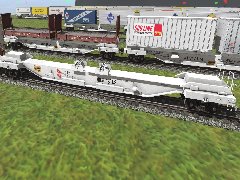 The Flexi-Van Mark 4 was introduced in 1964 and only carried 40ft trailers on end turntables and was 87ft-3in and had higher capacity trucks located closer to the center of the flatcar. (Note:Flexi-Van Mark 3 Flatcar was introduced in 1961 and only carried 40ft trailers on end turntables and was 86ft-9in in length, with the trucks directly under the end turntables). Has automatic assigned running numbers, and animated brake air hoses with sound. Thanks Wulf_9 for animated brake hoses. Many thanks to p-dehnert for script editing to permit the use of two script files