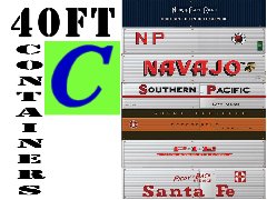 Note that this is Group C. Many thanks to jeeny (jean.decroos@telenet.be) for allowing reskin of his 40ft Containers. A group of trailer containers 40ft Long 8ft6 High of the 1960s ear used on Flexi-Van flatcars.