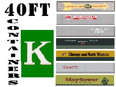 Note that this is Group K. Many thanks to jeeny (jean.decroos@telenet.be) for allowing reconfiguration to PBR material of his 40ft Containers. A group of trailer containers 40ft Long 8ft6 High of the 1960s ear used on Flexi-Van flatcars.