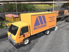 A Box Truck decorated for the fictional Mohawk Industrial Rail company. This is a reskin of a Dave Snow asset.