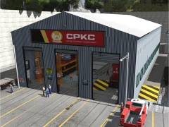 Locomotive or rolling stock repair shop with detailed interior to include animated rotating fans. Has five attachment tracks, three inside and two outside, one on each side of the building. This asset will snap to the baseboard. Has a Dig Hole for the pit, therefore, for best results, should only be rotated in 90 degree intervals. Has Night Mode. Decorated for CPKC (added sign, otherwise the same as MSGSappers version). This is a re-skin of 'SAP_Locomotive_ Repair_Shop_Generic' by MSGSapper (reskin) and Dave Snow (original author). My thanks to Dave and MSGsapper for this great and detailed item!