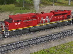 EMD SD70ACe decorated for the Muncy Valley Railroad with headlights in Nose version. This is a reskin of a Dave Snow asset. Many thanks to Dave Snow for allowing reskins.