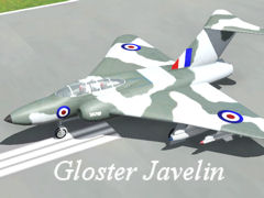 A Gloster Javelin aircraft, startup model. It operates on invisible track. It is set up for carrier operations.