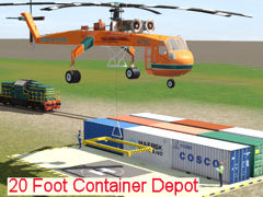 An airport dropping off point for loading and unloading container products to the helicopters. It has two fixed invisible tracks for a train and helicopter like the Erickson Sky Crane, kuid2:60238:8082:1 to use.