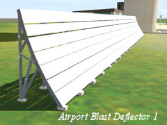 An airport blast deflector screen as a spline, modular length 2.4 metres, 2.4 metres high.