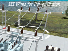 A high tension Power Line spline for a power station transformer layout, modular length 10 metres. Place this above the transformers to simulate electrical connection.