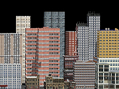 Images of city office buildings with a transparent background on a 360x50m plane. Based on a screenshot of various Trainz buildings. It does not cast shadows.