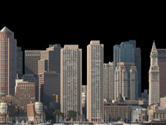 Images of city office buildings with a transparent background on a 360x50m plane. Based on a Boston skyline photo. It does not cast shadows. Mesh contains 2 triangles, 1 material (2-sided). Requested by smyers. Created in 3DS Max 2012.