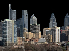 Images of city office buildings with a transparent background on a 360x50m plane. Based on a Philadelphia skyline photo. It does not cast shadows. Mesh contains 2 triangles, 1 material (2-sided). Requested by smyers. Created in 3DS Max 2012.