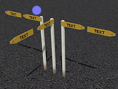 A 1-sided, post-mounted NZ Automobile Association sign, pointing left. Fits about 7 block letters of editable text. Snap-rotates in 1-degree increments.