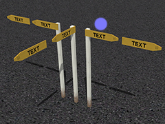 A 1-sided, post-mounted NZ Automobile Association sign, pointing right. Fits about 7 block letters of editable text. Snap-rotates in 1-degree increments.