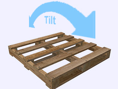 A 1165mm-square pine wood pallet. Suffix 'a' means it can be tilted along the central beam by up to +/-180 degrees.