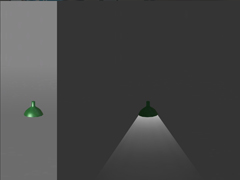 An overhead platform lamp with no electrical cord. It casts a conical gradient of white light in nightmode. There is no fixed ground plane of light included, but suitable nightmode light pools (such as kuids 68213 21078 to 21094) can be placed independently below it. This lamp can be tilted in Surveyor by rotating it while pressing the Shift key.