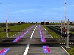 Grade Crossing Overhead US 4 Lanes 2 Tracks with protypically animated gates and lights.