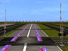 Grade Crossing US 4 Lanes 2 Track with protypically animated gates and lights. CR-for use with the Custom Invisible Roads.