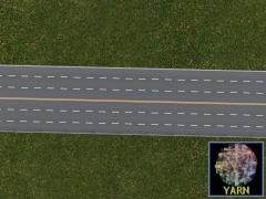 This particular model is a spline of six-lanes, double-yellow-line, Dashed white lines, no sidewalk, no shoulder road.