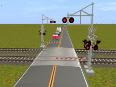 Grade Crossing Overhead US 2 Lanes 2 Track 45 Griswold with protypically animated gates and lights. The side lights are removable and the crossbucks are interchangable. See the readme file located in the instruction folder, which is located in the main object folder, which will explain how to do this. These crossings will only work in 2006 and later versions.