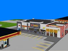 Love's Truck Stop with McDonald's and Subway. This is modeled directly after the Love's Truck Stop located at the Summit Crossing in Tehachapi, California. Has Night Mode.