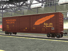 Waffle side boxcar as produced by Pullman-Standard or American Car & Foundry, 50 ft. lettered for the Western Pacific Railroad. Provided with ARN.