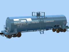 ACF 16,388 Gallons Tank Car lettered for ACFX, Version 5, with Simpson Lee Paper Company logo. Has ARN. Loads Ethanol and Liquid Chlorine.
