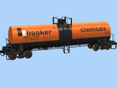 ACF 16,388 Gallons Tank Car lettered for HCPX, with Hooker Chemical Company logo. Has ARN. Loads Ethanol and Liquid Chlorine.