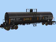 ACF 16,388 Gallons Tank Car lettered for AXLX. Has ARN. Loads Ethanol and Liquid Chlorine.