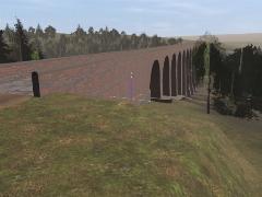 A brick built bridge abutment that matches <kuid2:99333:38240:4> Viaduct Red Brick4. A single track width with a ground level to deck height of 122feet.