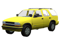 Chevy Blazer, Yellow, Static. Freeware and in the public domain. I, Dave Snow, did NOT create this model nor the textures EXCEPT for the Interior textures. This item was obtained free of charge from www.archibase.net and free image hosting service. This asset is free to reskin and upload to the DLS with no permission needed.