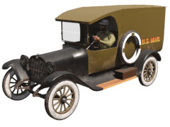 Ca 1918 Dodge mail truck configured as a traffic asset for YARNish roads. Includes a driver, sound, and working headlights at night.