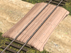 A 20' wood crossing. Non-interative (does not stop traffic or connect to road splines). Will snap to track for proper placement.