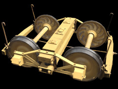 Standard gauge arch-bar truck, 33 in wheel dia. Wood bolster.