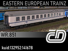 WR.851 series restaurant coach of Czech Railways, manufactured by VEB Waggonbau Bautzen in 1976. Model presents the early 2010s state. 3D kilanziom, photos samplaire, textures samplaire, script RBach. TRS2004+