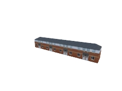 Modern terraced house row. Ultra low poly version for distant use. Uses mesh library 134105:29600 to reduce frame rate impact when other buildings using the same library are used together.