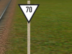 Signal Lf4 der Deutschen Reichsbahn. Die Beschriftung erfolgt mit Angabe der Geschwindigkeit.