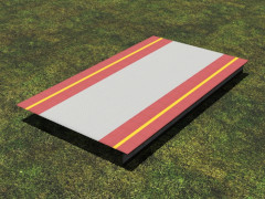 Seasonal modern Polish platform M2, red variant, 7.6 meter width. Security zone width 1.0 m: for trains passing at 60-140 km/h. Recommended to use together with the corresponding PNS Polish Invisible Station asset.