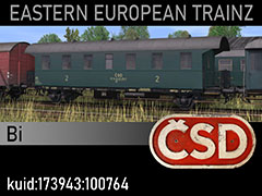 Bi series 2nd class passenger coach owned by Czechoslovak State Railways CSD. Originally this coach was manufactured in 1929 by HAWA factory for German Railways DRG as Ci-29 type No 85 105 Ci, taken over by CSD after 1945, it remained in service until mid 1970s. 3d by kilanziom, photos by kilanziom, textures by kilanziom, script by Qcyk85. Model suitable for TRS2004+